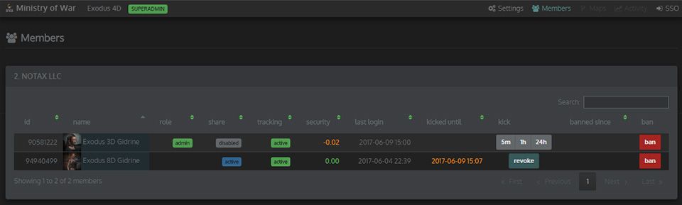 Characters with in-game corporation roles can grant acces to PATHFINDER corporation admin interface.